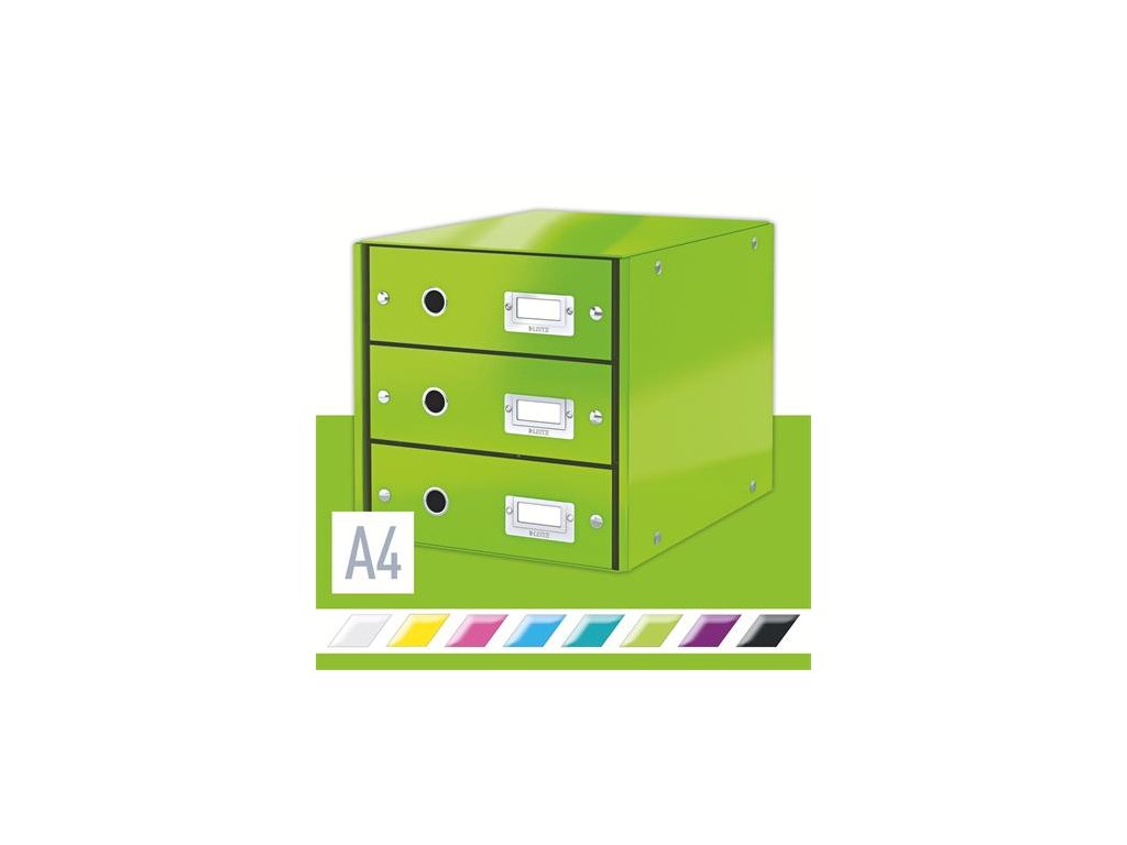 Zásuvkový box, polaminovaný kartón, 3 zásuvky, LEITZ "Click&Store", zelený