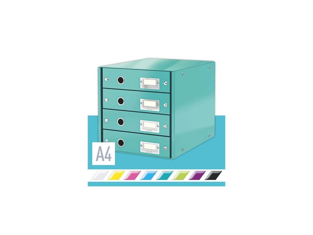 Zásuvkový box, polaminovaný kartón, 4 zásuvky, LEITZ "Click&Store", ľadovo modrá