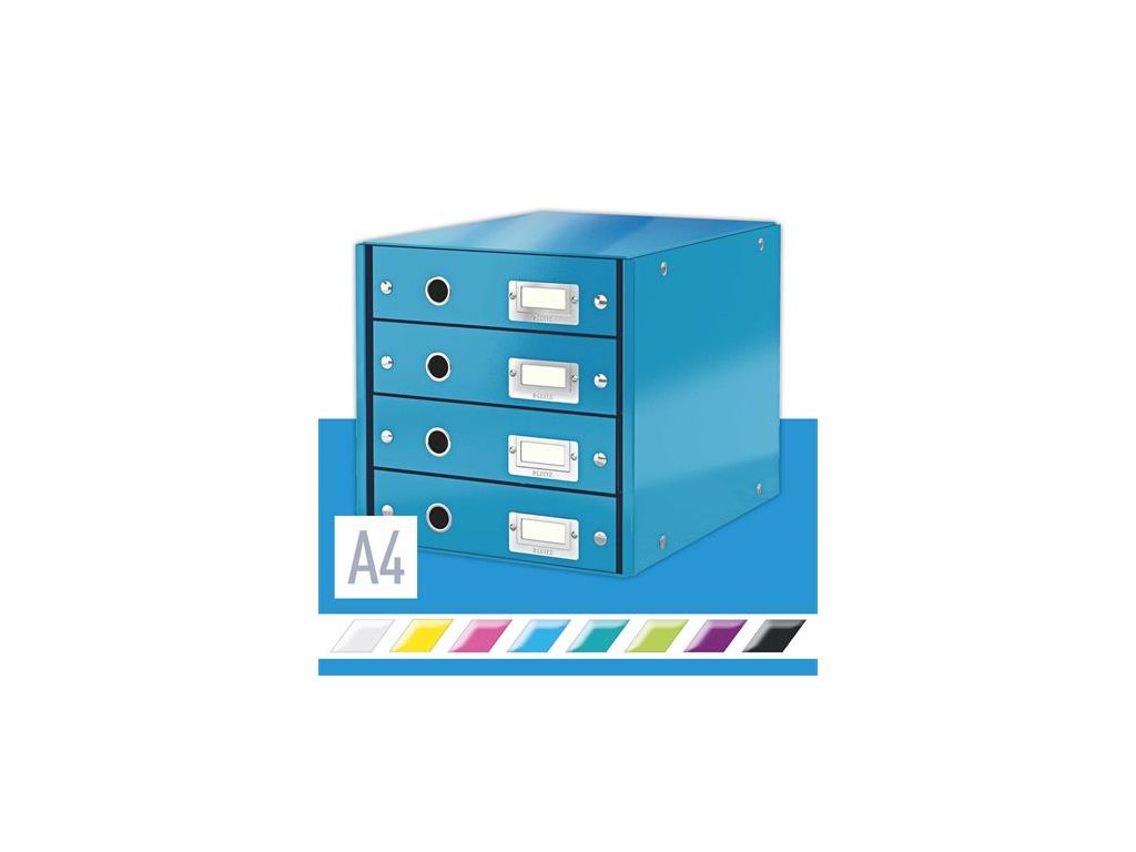 Zásuvkový box, polaminovaný kartón, 4 zásuvky, LEITZ "Click&Store", modrá