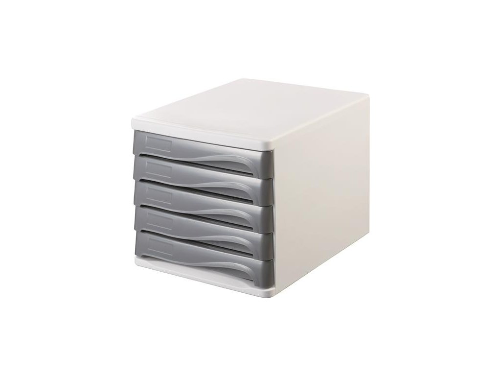 Zásuvkový box na dokumenty, plast, 5 zásuviek, HELIT, sivý/sivý