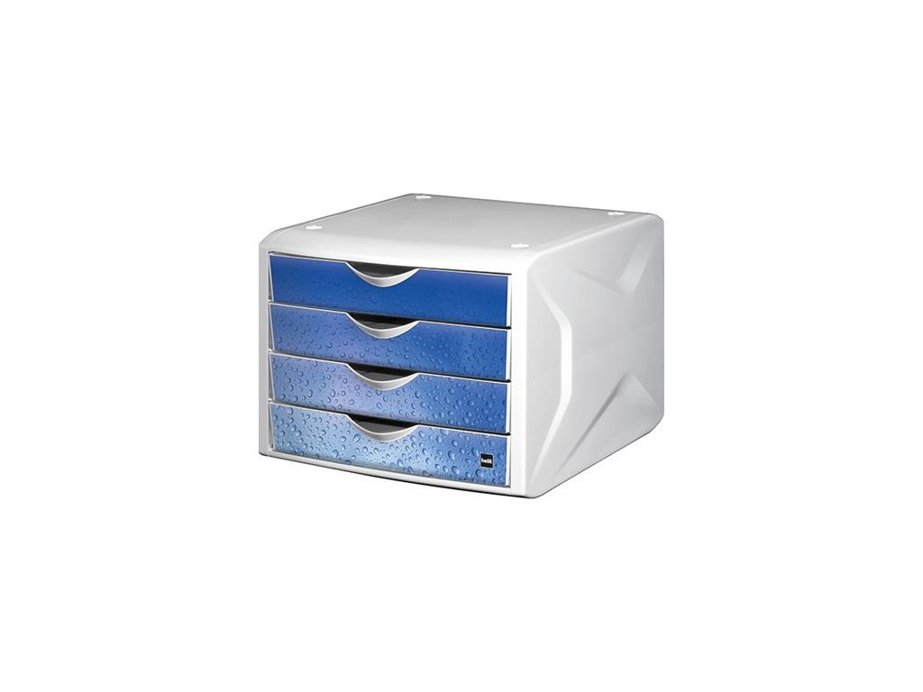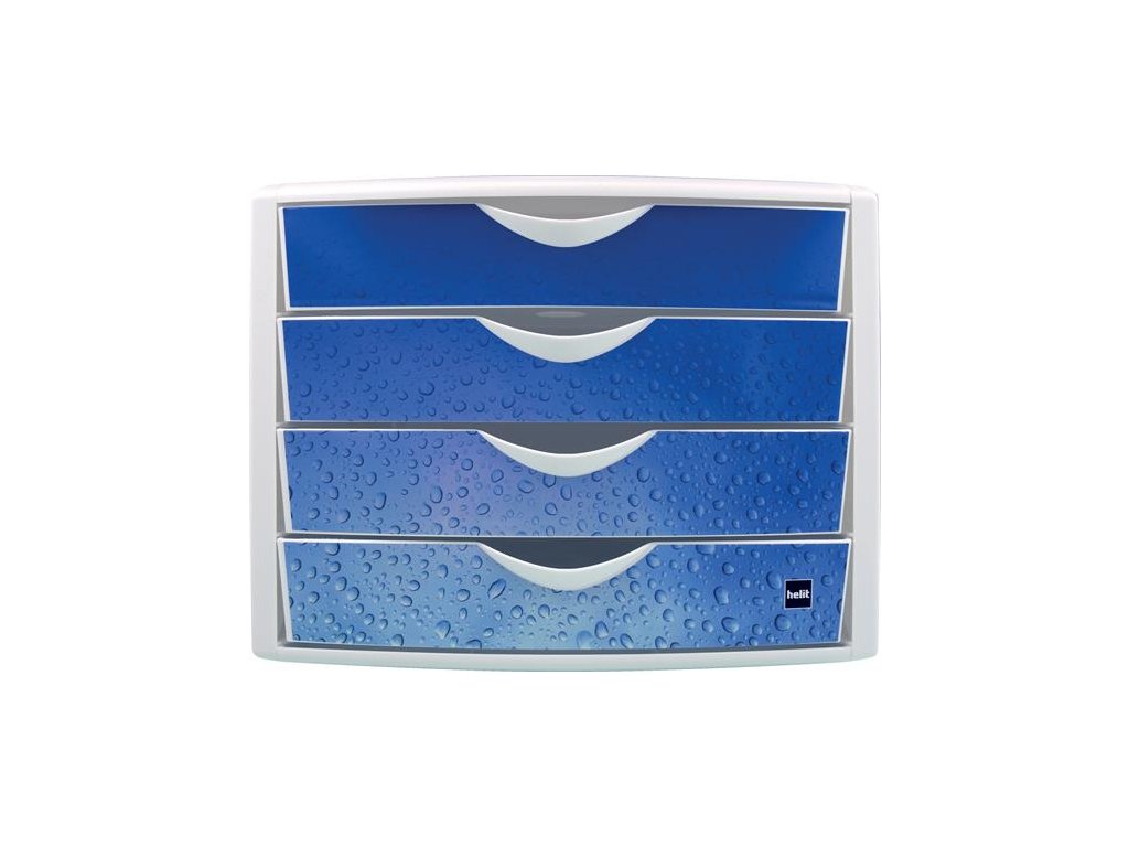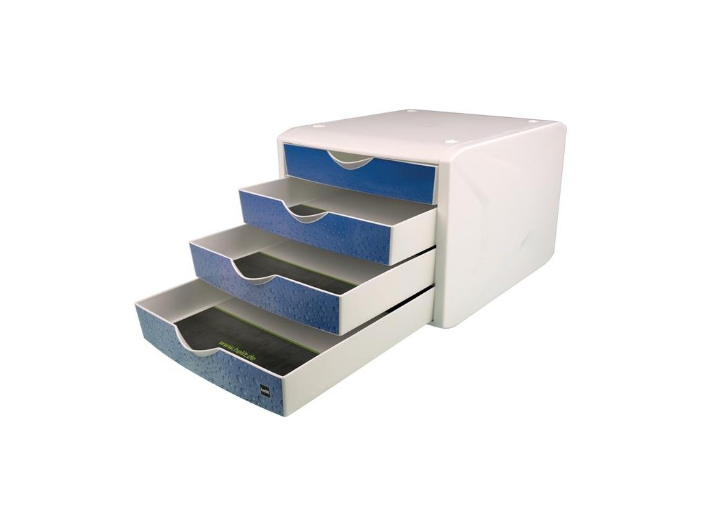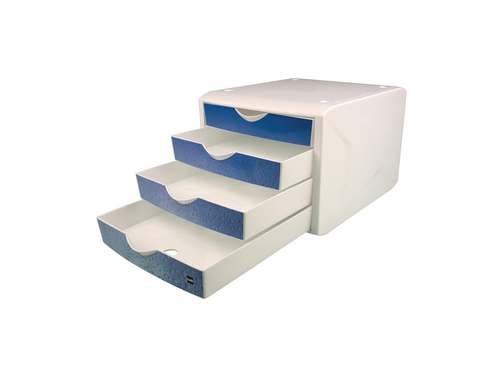 Zásuvkový box na dokumenty, plastový, 4 zásuvky, HELIT "Chameleon", biela-modrá