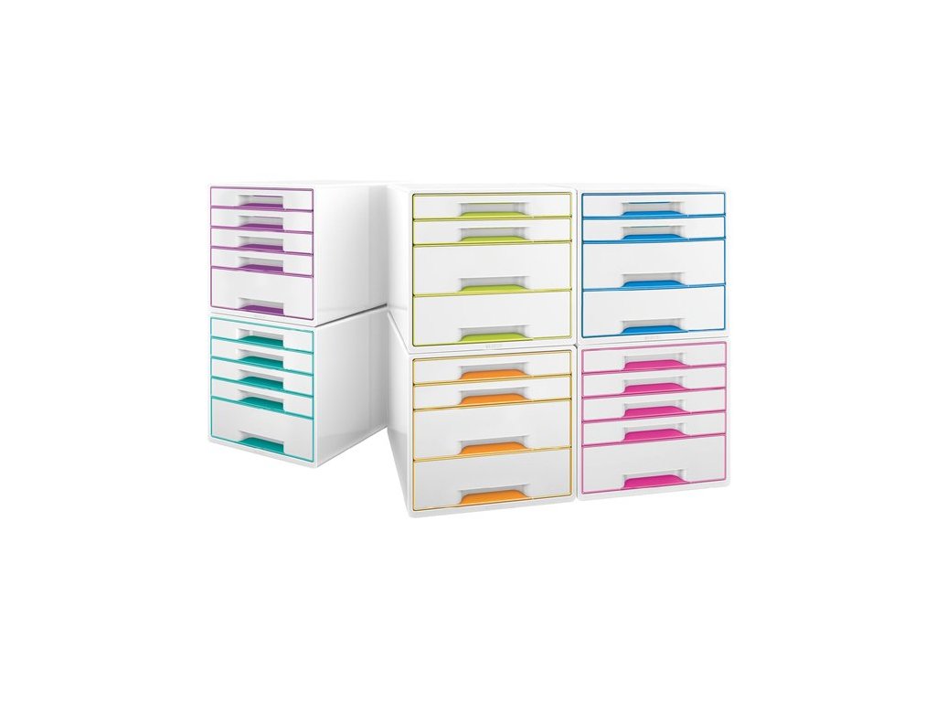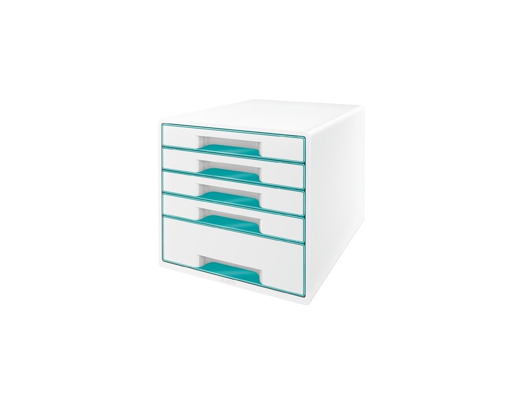 Zásuvkový box na dokumenty, plastový, 5 zásuviek, LEITZ "Wow Cube", biely/ľadovo modrý