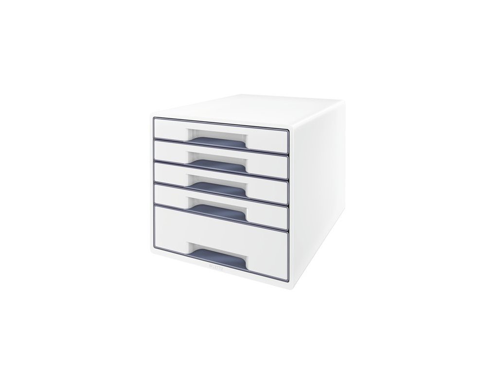 Zásuvkový box na dokumenty, plastový, 5 zásuviek, LEITZ "Wow Cube", biely/sivý