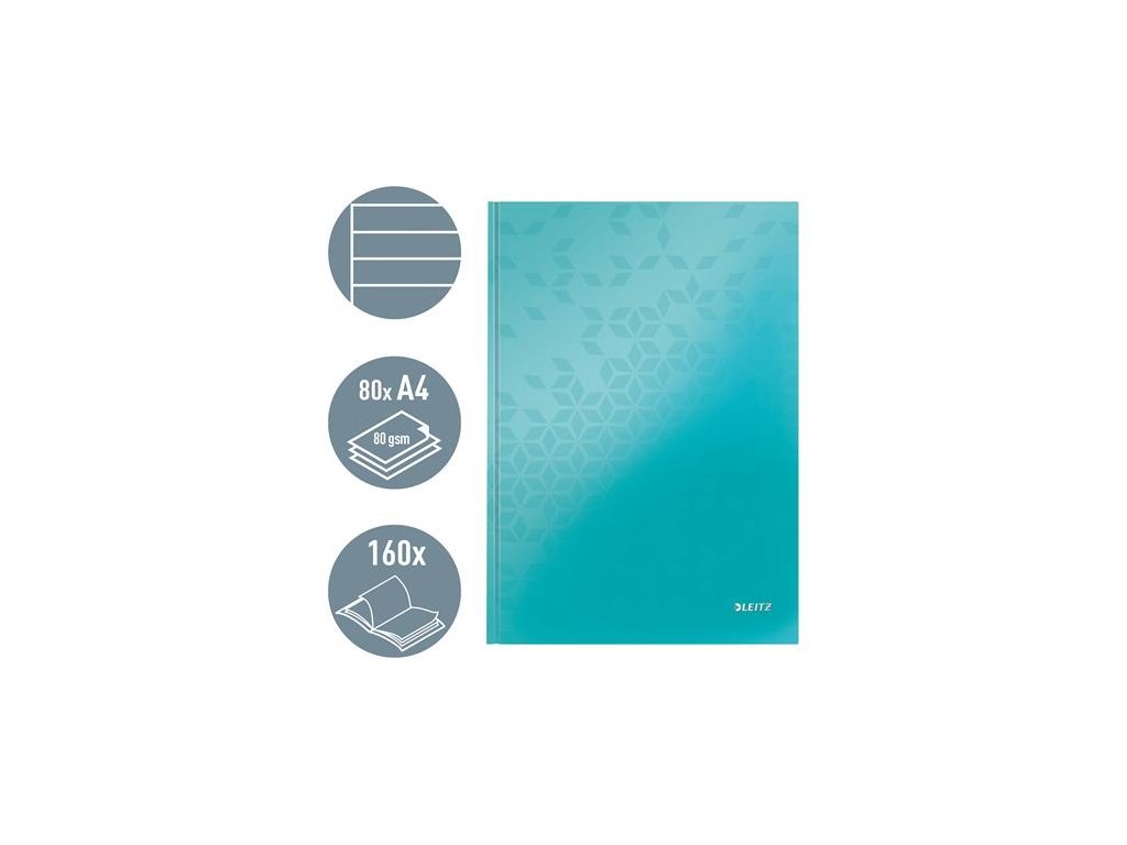 Záznamová kniha, A4, linajková, 80 listov, tvrdá obálka, LEITZ "Wow", ľadovo modrá