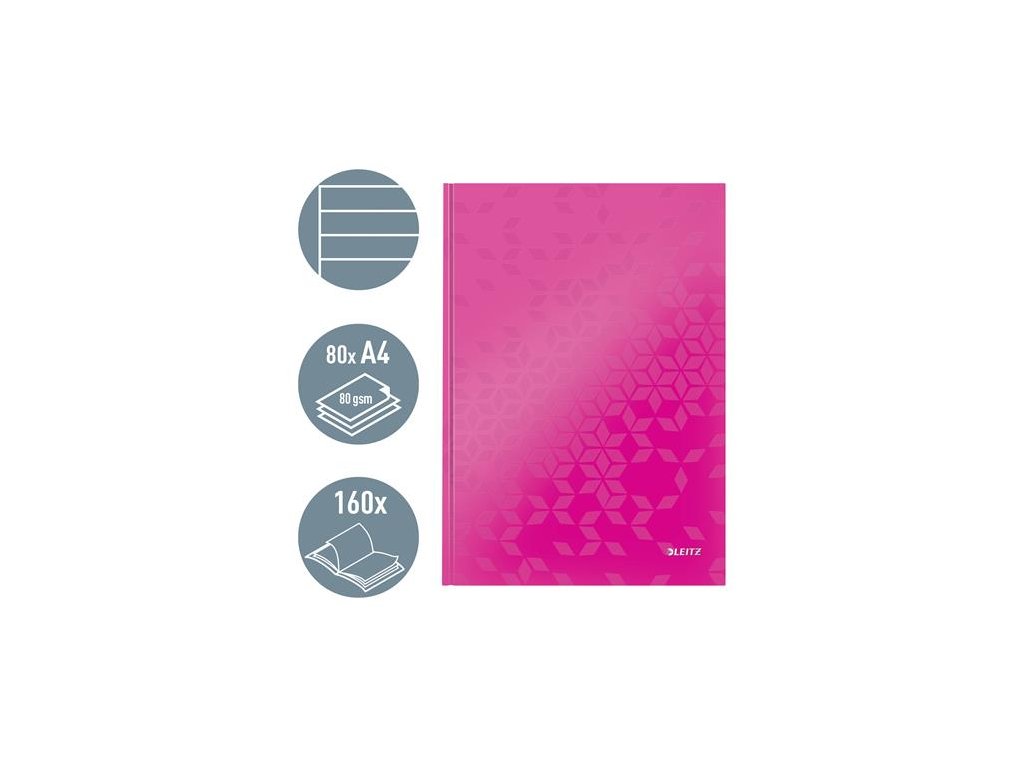 Záznamová kniha, A4, linajková, 80 listov, tvrdá obálka, LEITZ "Wow", ružová