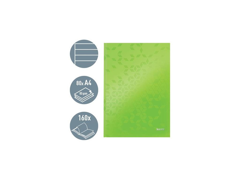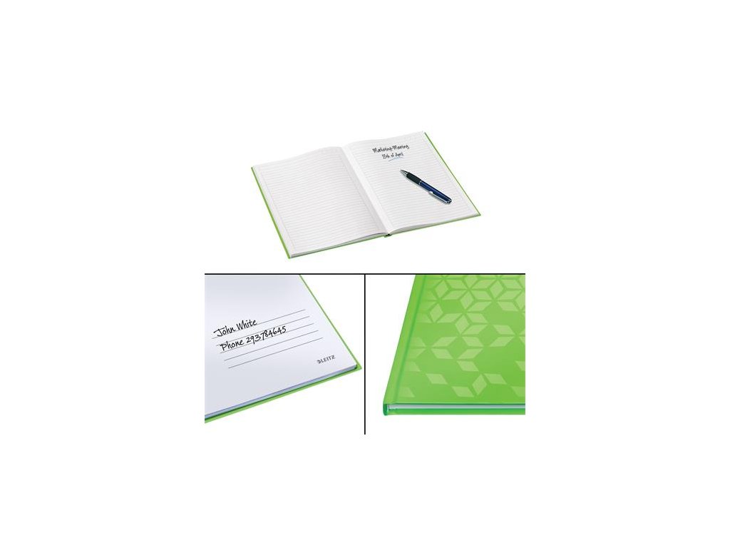 Záznamová kniha, A4, linajková, 80 listov, tvrdá obálka, LEITZ "Wow", zelená