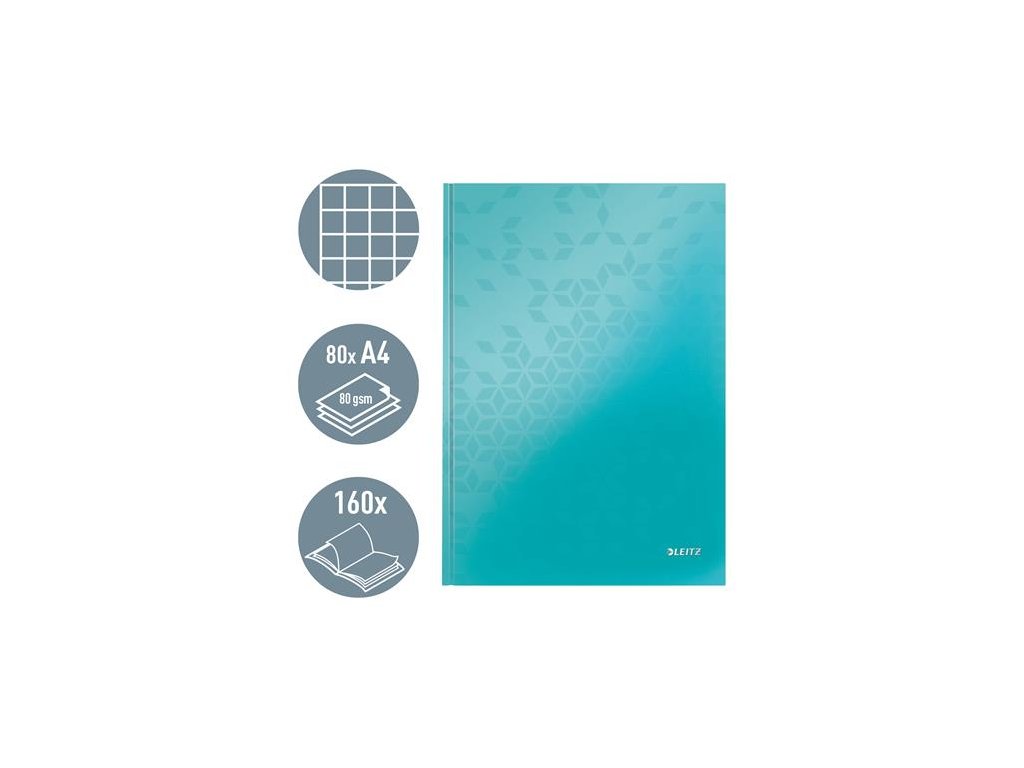 Záznamová kniha, A4, štvorčeková, 80 listov, tvrdá obálka, LEITZ "Wow", ľadovo modrá