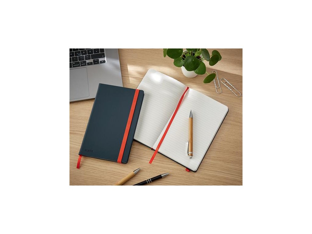 Záznamová kniha, A5, linajková, 80 listov, tvrdá obálka, LEITZ "Cosy Soft Touch", zamatová sivá