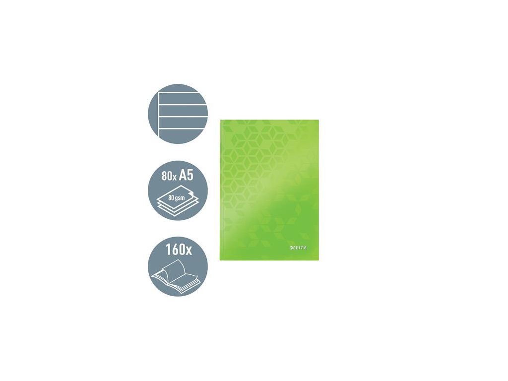 Záznamová kniha, A5, linajková, 80 listov, tvrdá obálka, LEITZ "Wow", zelená