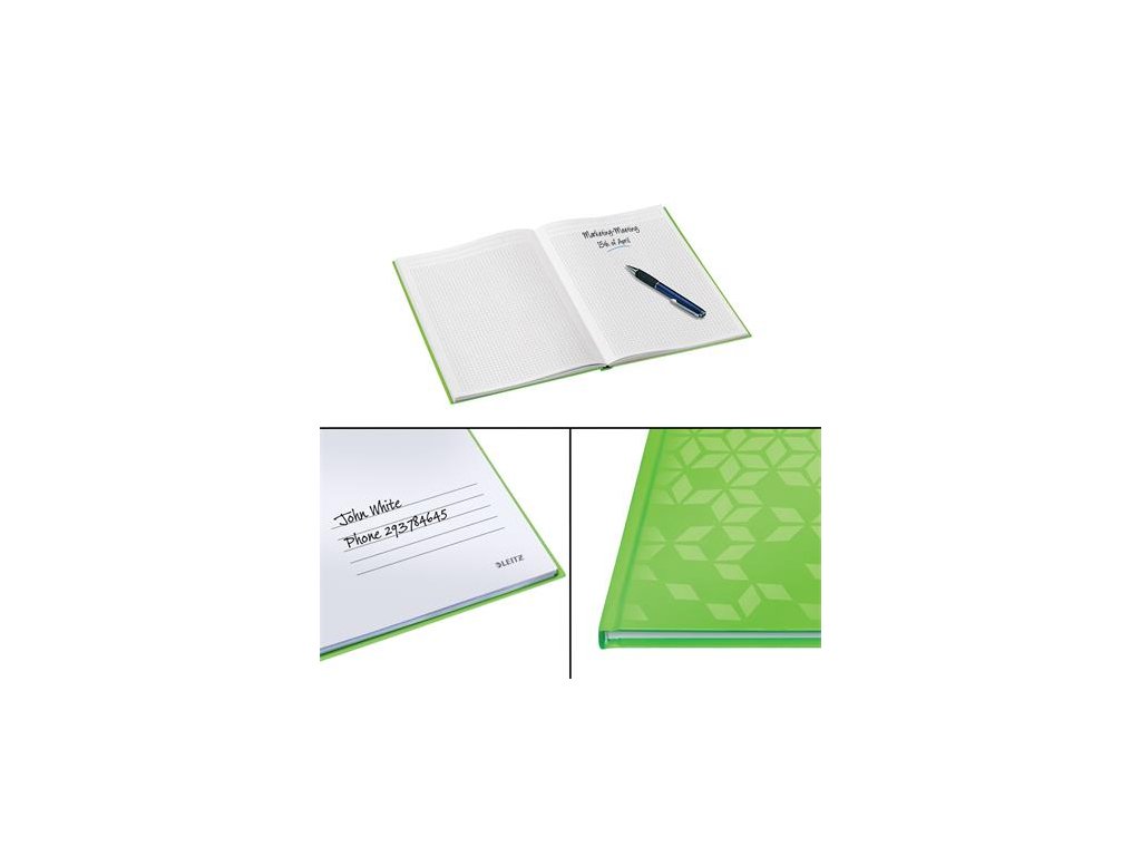 Záznamová kniha, A5, štvorčeková, 80 listov, tvrdá obálka, LEITZ "Wow", zelená