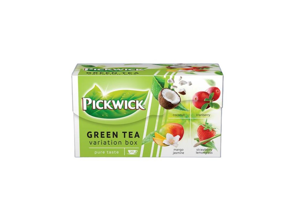 Zelený čaj, 20x1,5 g, PICKWICK "Ovocné variácie zeleného čaju", kokos, brusnica, jahoda-citrónová tráva, mango-jazmín