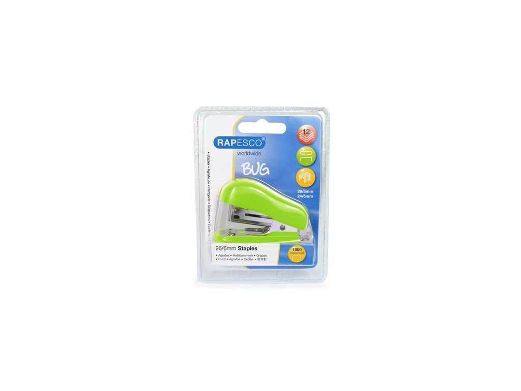 Zošívačka, 24/6, 26/6, 12 listov, RAPESCO "Bug Mini", zelená