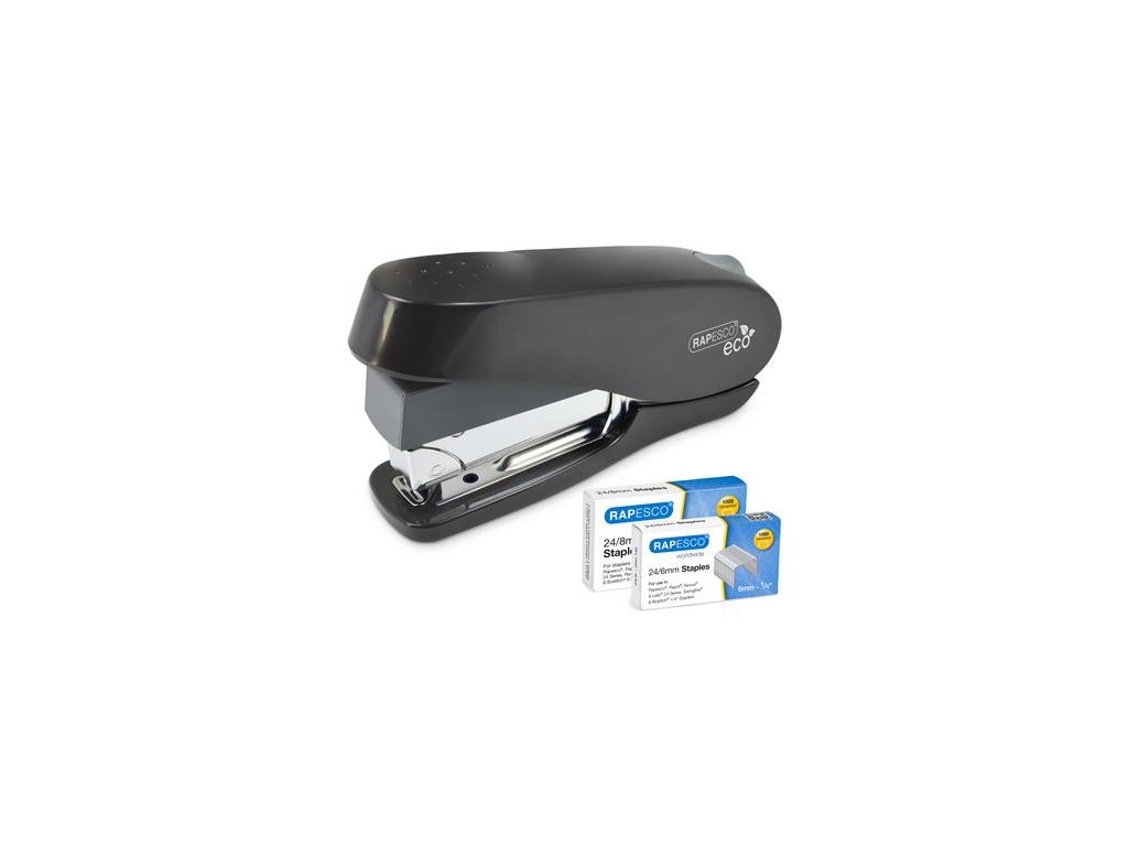 Zošívačka, 24/6, 26/6, 26/8, 50 listov, uľahčené zošívanie, antibakteriálne, RAPESCO " ECO Luna Less Effort", čierna