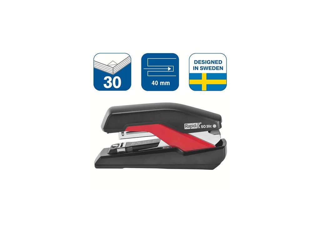 Zošívačka, 30 listov, RAPID "Supreme SuperFlatClinch S030c", čierna/červená