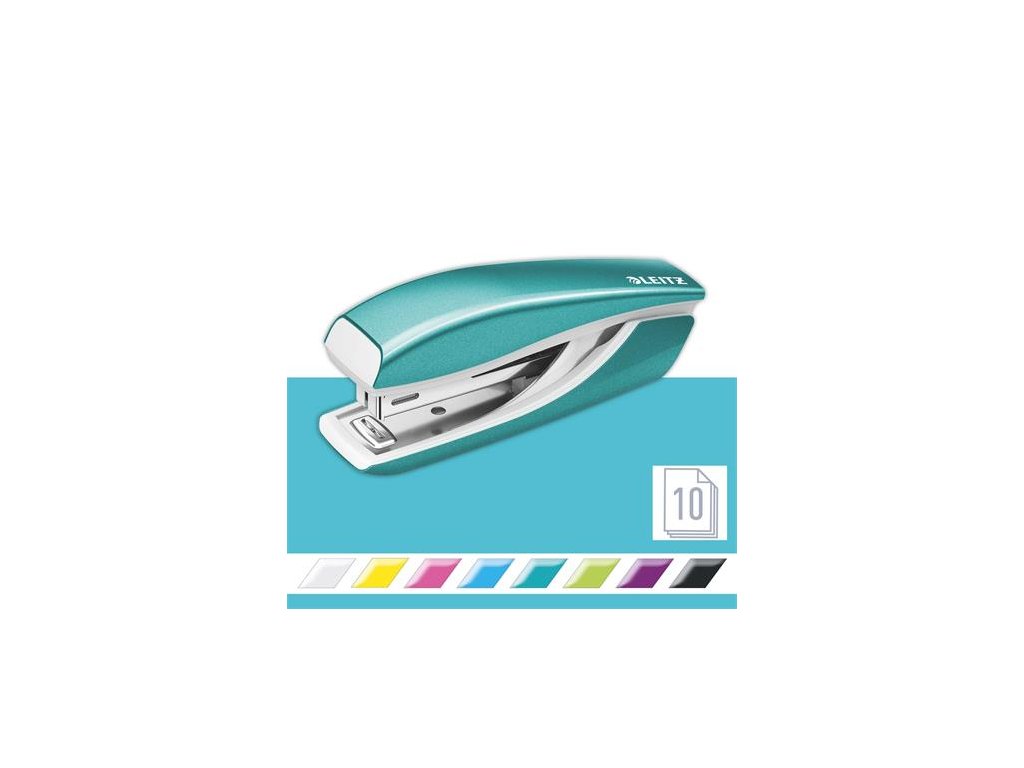 Zošívačka, mini, No. 10, 10 listov, kovová, LEITZ "Nexxt Wow", ladovo modrá