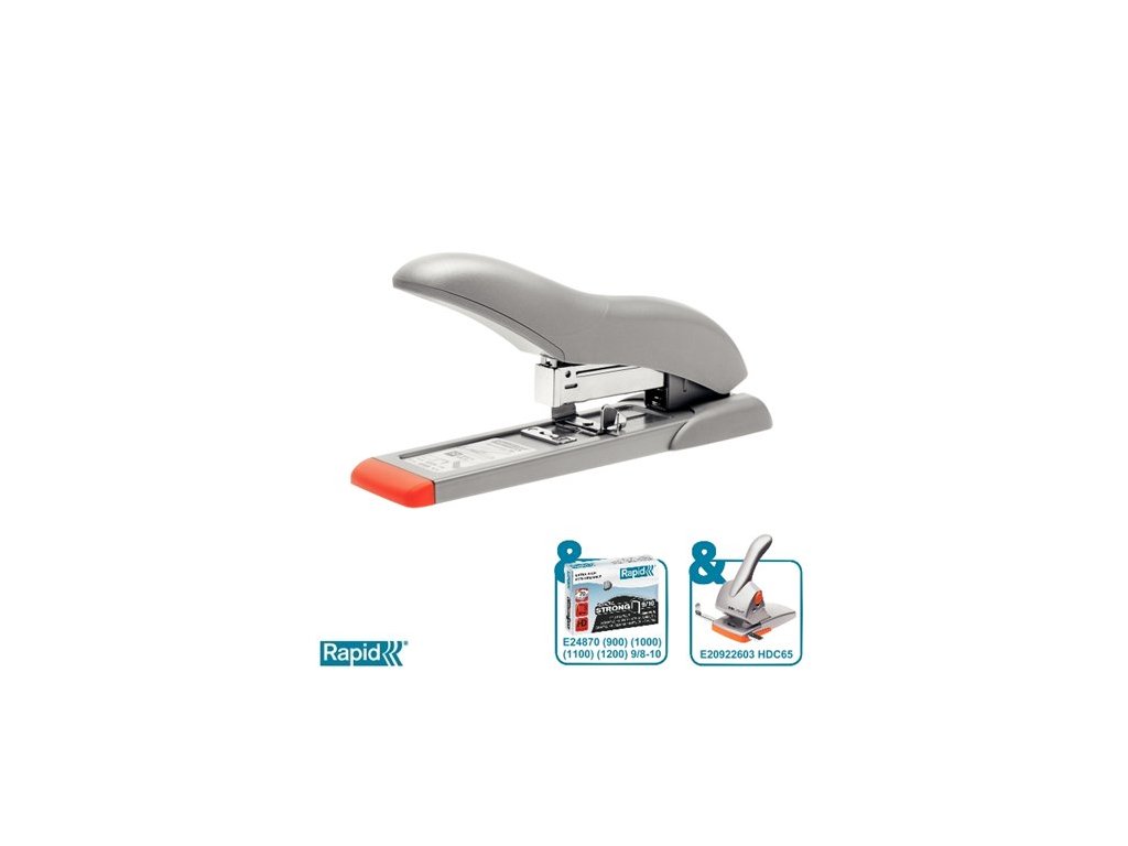 Kompaktná veľkokapacitná zošívačka vhodná pre kancelárie i domácnosti. kapacita: 70 listov hĺbka zošívania: 53 mm odporúčané spinky: 9/8-10 Superstrong (E24871000, E24871200) pohodlné doplnenie 5 ročná záruka v prípade používania spiniek RAPID odporúčaná dierovačka: HDC65 Značka: RAPID Výrobca: Esselte Kft. Adresa: 1139 Budapest, Lomb u. 37-39. A ép. II. 8., Hungary Web: https://www.accobrands.com/brands/ Email: hungarymarketing@acco.comDodatočné parametre