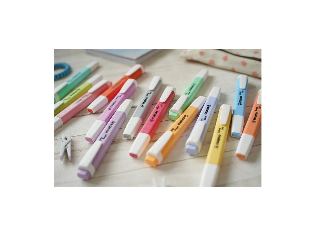 plochý, tenký zvýrazňovač vhodný do vrecka v elegantnej pastelovej farbe farba písma tiež pastelová pohodlne sa zmestí aj do peračníka protišmykový úchyt bez uzáveru nevyschne až 4 hod uzáver s ventilom atrament na vodnej báze zrezaný hrot (1-4 mm) Značka: STABILO Výrobca: STABILO international GmbH Magyarországi Fióktelepe Adresa: 1033 Budapest, Szőlőkert köz 7/a., Hungary Web: www.stabilo.hu Email: info.hu@stabilo.comDodatočné parametre