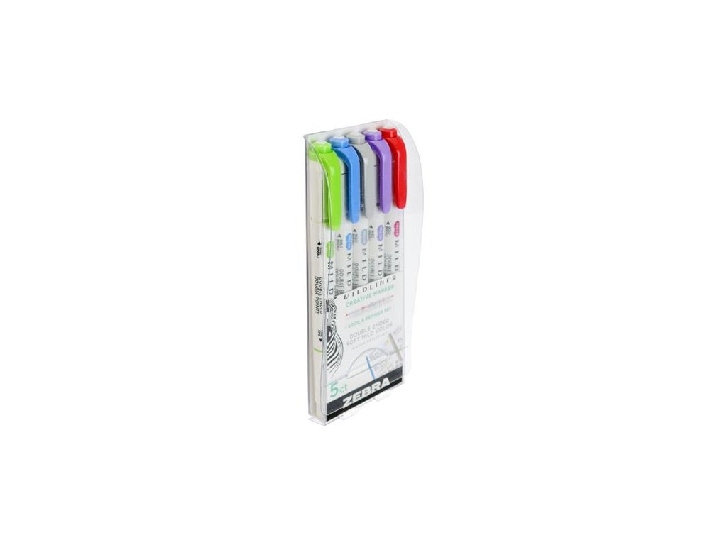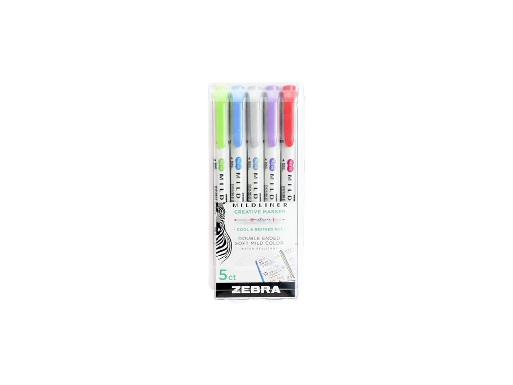 Zvýrazňovač, sada, 1,0/3,5 mm, obojstranný, ZEBRA "Mildliner Cool & Refined", 5 farieb