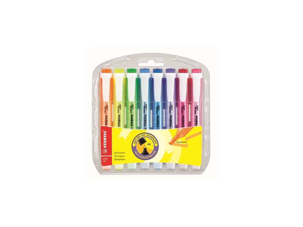 Zvýrazňovač, sada, 1-4 mm, STABILO "Swing Cool", 8 rôznych farieb
