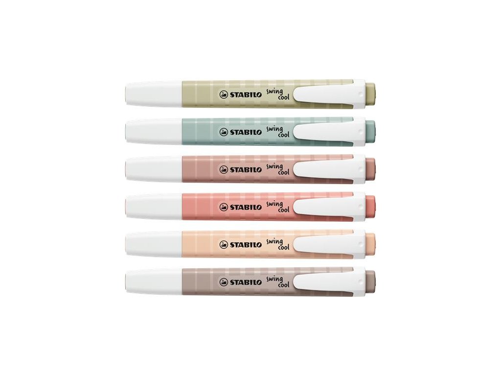 Zvýrazňovač, sada, 1-4 mm, STABILO "Swing cool NatureCOLORS", 6 rôznych farieb
