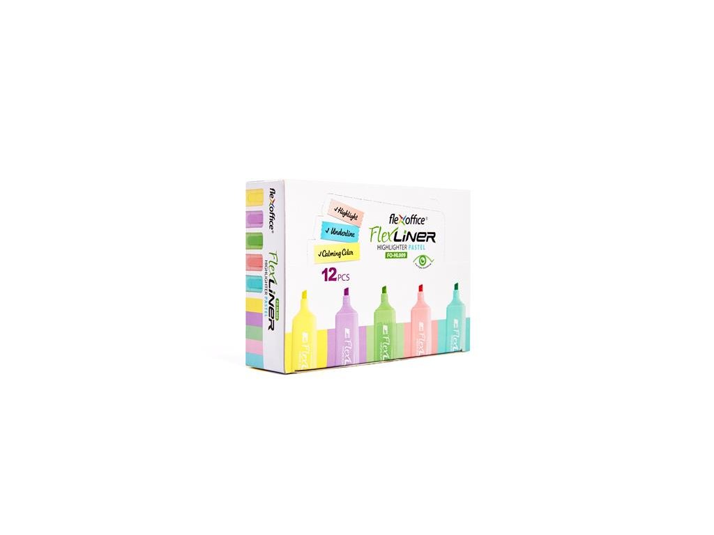 Zvýrazňovač, sada, 1-5 mm, FLEXOFFICE "Flexliner", mix pastelových farieb