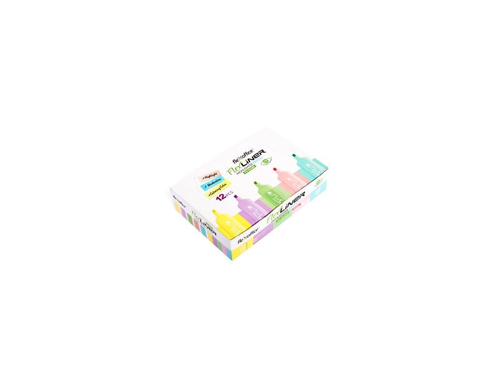 Uzáver vo farbe atramentu, silný klip -krásne pastelové farby - zvýraznený text sa dá kopírovať -hrúbka písma: 1-5 mm -obsah balenia: 4 x žltý, 2 x modrý, 2 x zelený, 2 x fialový, 2 x ružový zvýrazňovačZnačka: FLEXOFFICE