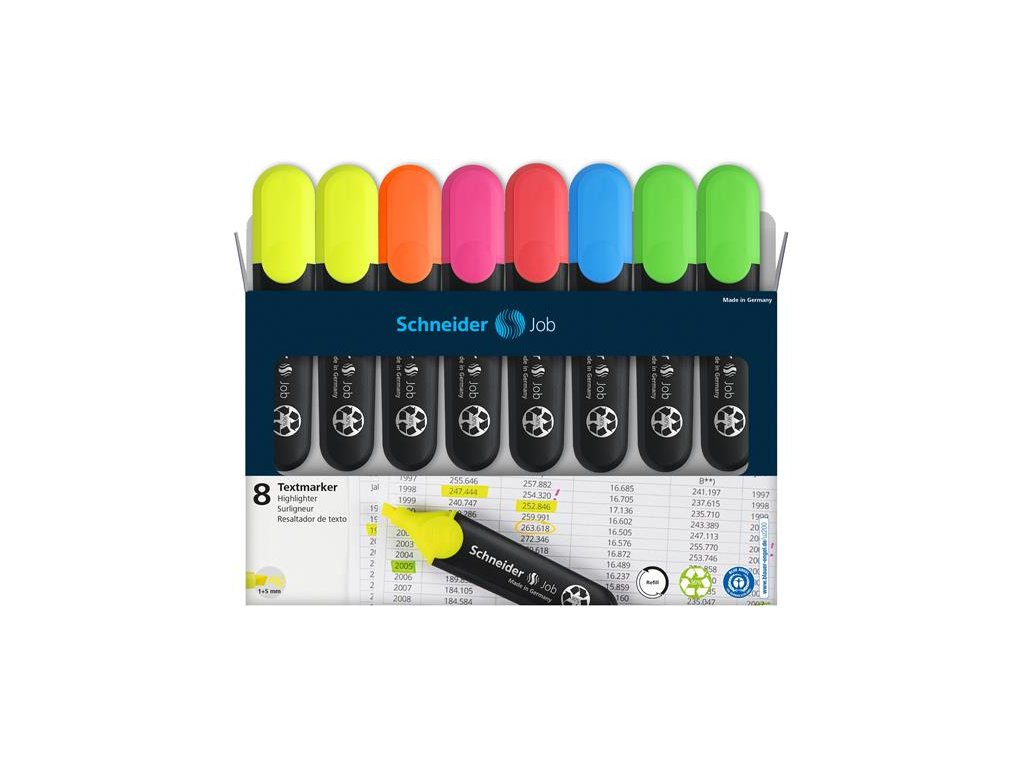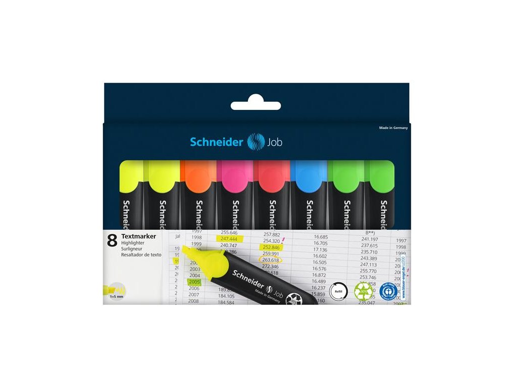 Zvýrazňovač, sada, 1-5 mm, SCHNEIDER "Job 150", 6+2 farieb