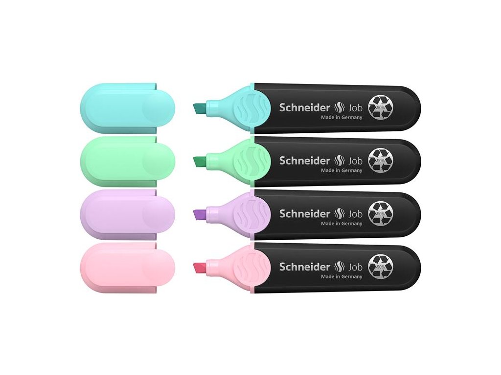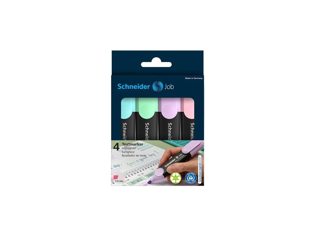 Zvýrazňovač, sada, 1-5 mm, SCHNEIDER "Job Pastel", 4 rôzne pastelové farby