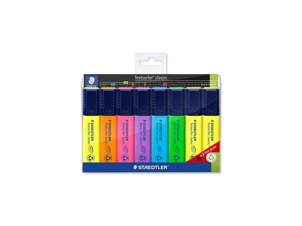 Zvýrazňovač, sada, 1-5 mm, STAEDTLER "Textsurfer Classic 364", 6+2 rôznych farieb