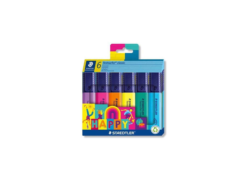 Zvýrazňovač, sada, 1-5 mm, STAEDTLER "Textsurfer® classic 364 C Happy", 6 rôznych farieb
