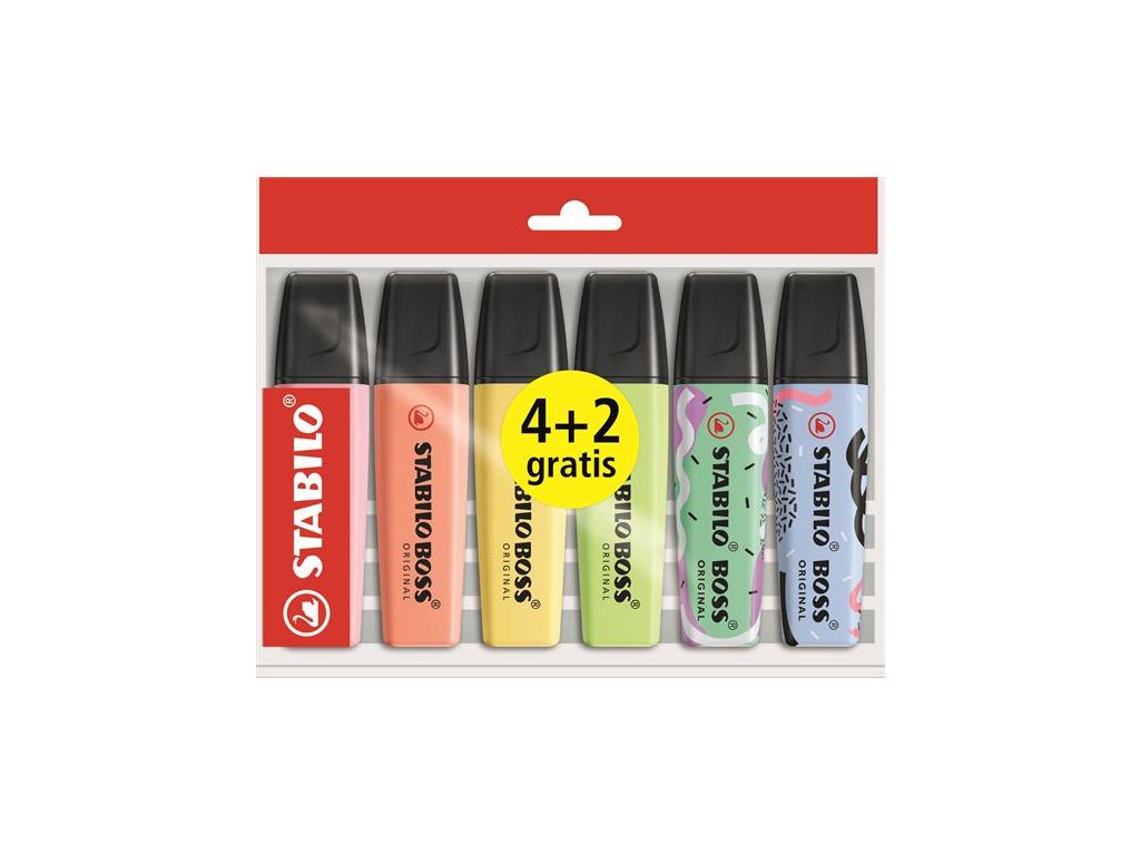 Zvýrazňovač, sada, 2-5 mm, STABILO "Boss Original", 4+2 rôzne pastelové farby
