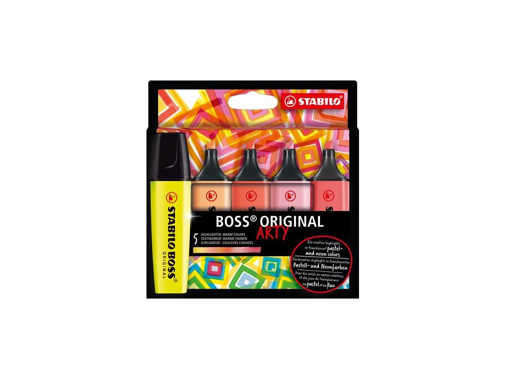 Zvýrazňovač, sada, 2-5 mm, STABILO "BOSS original Arty", 5 teplých farieb