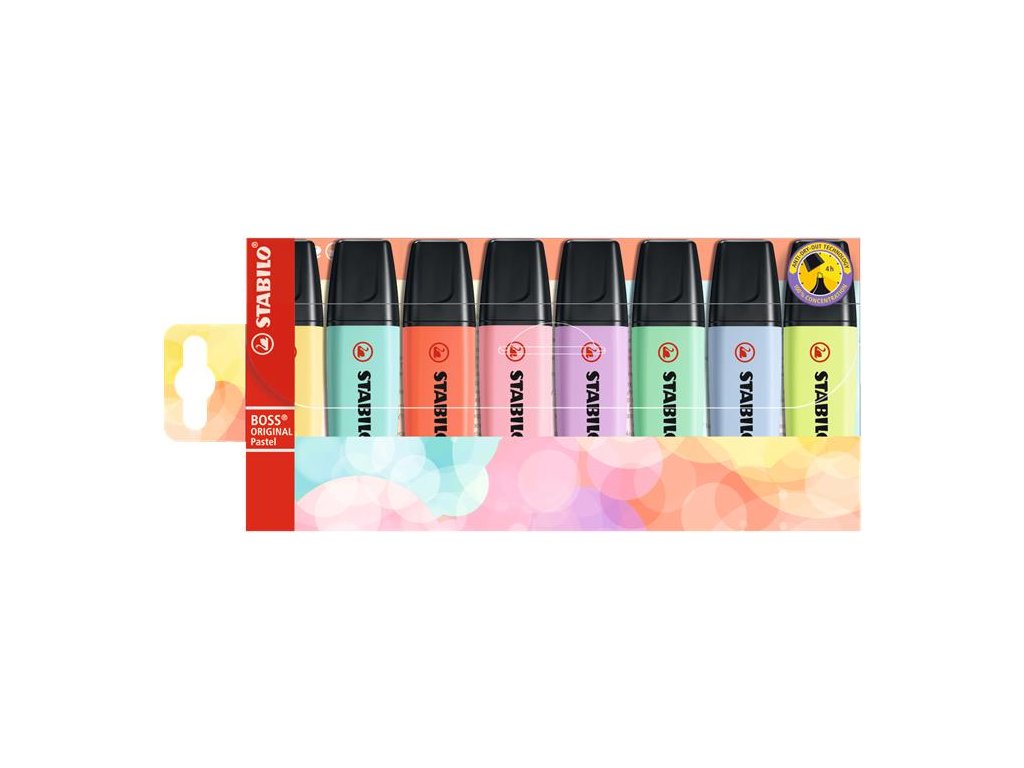 Zvýrazňovač, sada, 2-5 mm, STABILO "BOSS original Pastel", 8 rôznych farieb