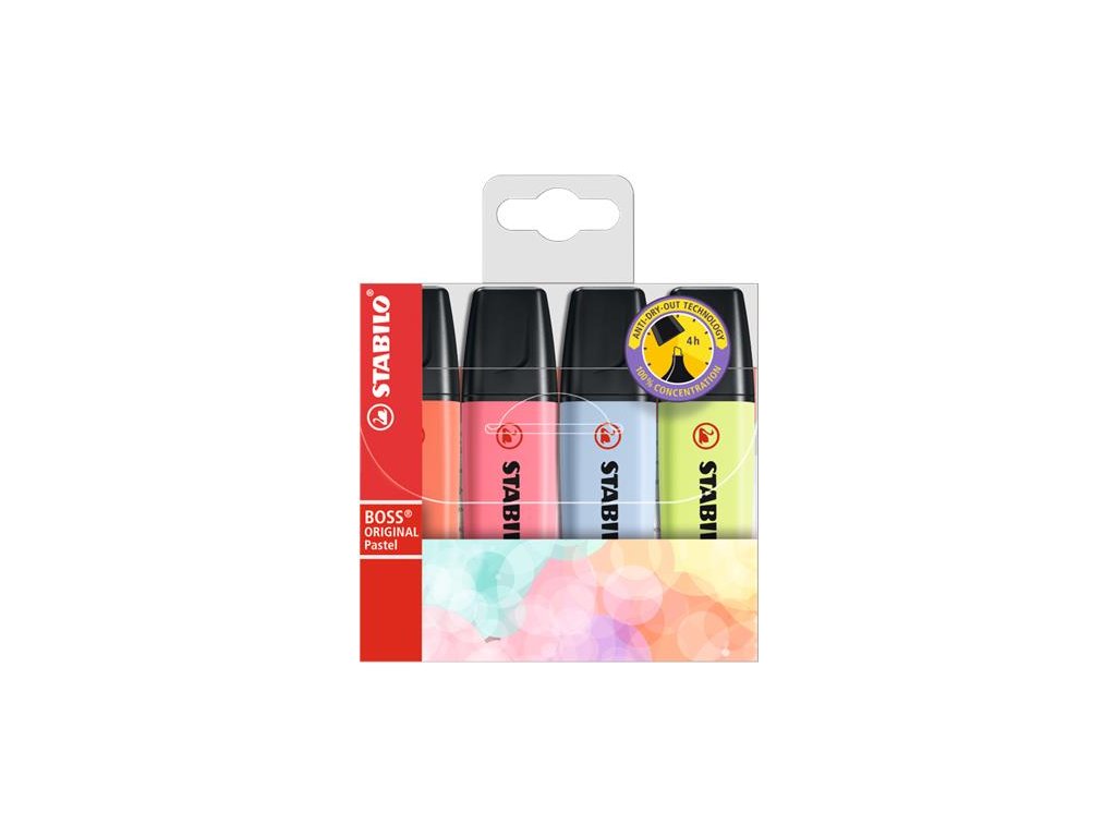 Zvýrazňovač, sada, 2-5 mm, STABILO "BOSS original Pastel3", 4 rôzne farby