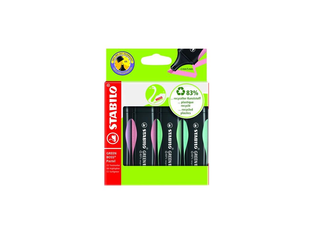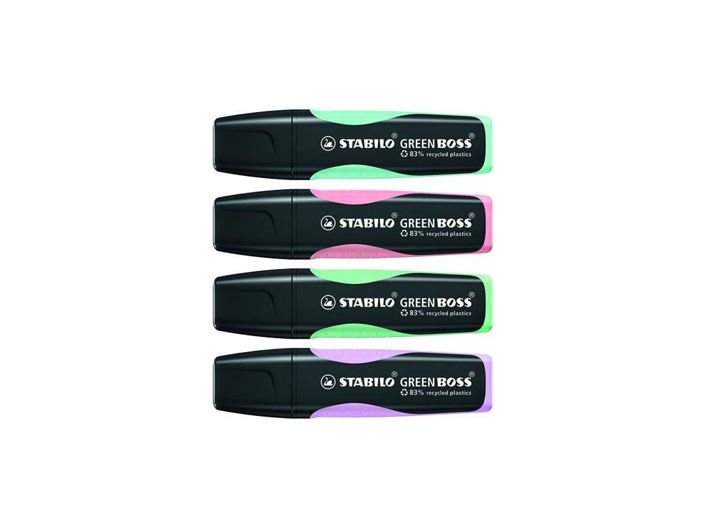 Zvýrazňovač, sada, 2-5 mm, STABILO "Green Boss Pastel", 4 rôzne farby