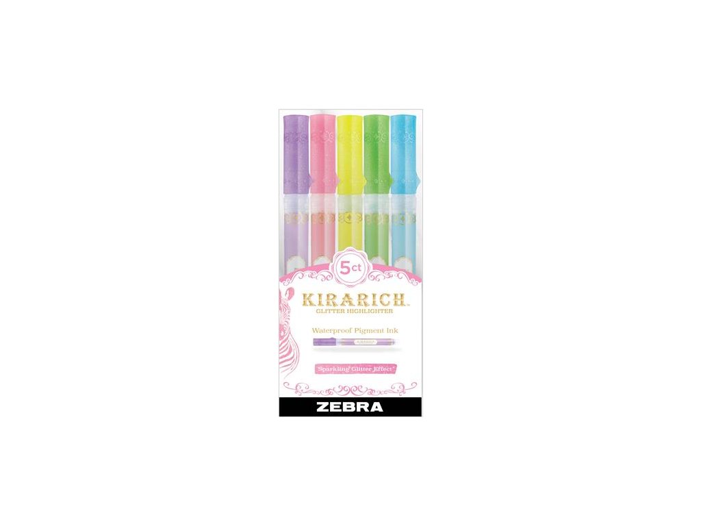 Zvýrazňovač, sada 3,5 mm, zrezaný hrot, ZEBRA "Kirarich", 5 rôznych farieb